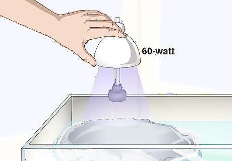 Set up a basking area with a 60-watt UV lamp. Place the lamp on top of the tank in one section, like a corner, and put a flat rock underneath it where the turtle can lay to sun itself. Set the temperature of the lamp to about 80 to 85 °F (27 to 29 °C). You can also use a piece of driftwood instead of a rock. If your tank is mostly filled with water, try a floating basking rock. Put the lamp high enough so that it’s 12 inches (30 cm) away from the top of the turtle when the animal is basking.
