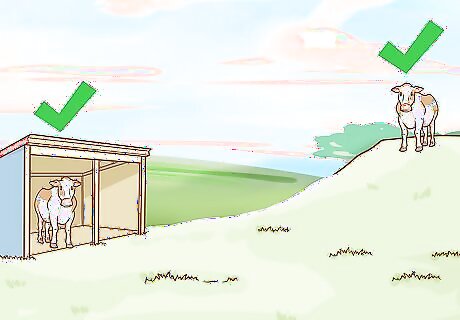 This gives your cattle somewhere safe to stay during bad weather. If extreme weather hits, you need to be able to move your cattle to a paddock with high ground, so that they can ride out the rain or flooding without injuries. Alternatively, you can build a barn or fenced in area with roof coverage for your cattle, but this is a luxury that many cattle owners do not create. If you choose to keep your cattle in a contained area, muck out the manure regularly to avoid the spread of diseases. Check that the flooring of any housing is slip-resistant. This will reduce the possibility of injury to the animals, especially in wet conditions.
