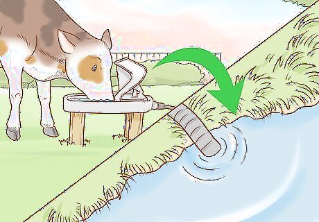 You can use a natural water source or a tank. If a stream or river runs through a paddock space, it can provide a source of water for your cattle. You can construct an access ramp, so that cows can access the water easier without polluting it. Or, you can use a siphon system to fill up water tanks from this source. Another alternative is to install an animal-operated pasture pump. This is a water pump that is triggered by a cow’s nose pressing against the lever in the water tank. Then, the water is automatically siphoned up from the river to fill the tank. If you are using a freshwater spring or river as a water source, it’s important to clean it out periodically to ensure that it doesn’t become contaminated and spread disease. As a general rule, cattle need daily access to between 1-2 gallons of fresh water per 100 pounds of body weight. This means that you’ll want at least 1 tank per paddock that can hold the minimal amount of daily water for the animals in that space.