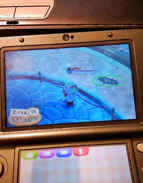 Go up and down the beach. Use the Circle Pad on your 3/2DS to walk along where the water and sand meet. Go to one end of the beach, then go back to the other end. If you want to increase your chances of encountering this fish, every time you get to one side of the beach, press the "Start" button on your 3/2DS and select "Save and Continue". This will both save your game, and it will reset all the bugs and fish in the game, increasing your chances of catching it.IMG_20190214_232853.jpg Do not hold down the B button. Whilst this will make you run faster it will also scare away any fish.