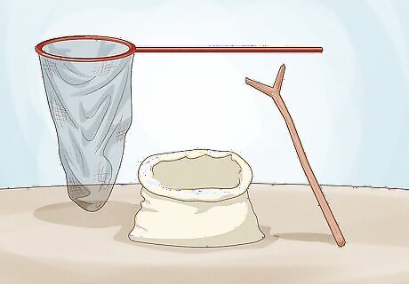 Prepare your materials. Luckily, you don't need any special equipment to catch garter snakes. Because they are not harmful to humans, you don't need to worry about expensive protective gear (though you should take care to not get bitten in order to avoid a possible secondary infection—plus, it probably won't feel too great to be bitten, even if the bite won't cause lasting damage!). Some materials that you may find helpful are a soft net, bag and/or pillowcase and a forked stick. We'll explain how you will use these materials in subsequent steps. Alternatively, you can bring a large bucket along with your forked stick. Make sure that the bucket has a lid with ventilation.