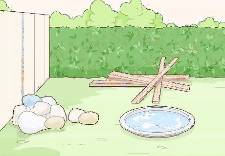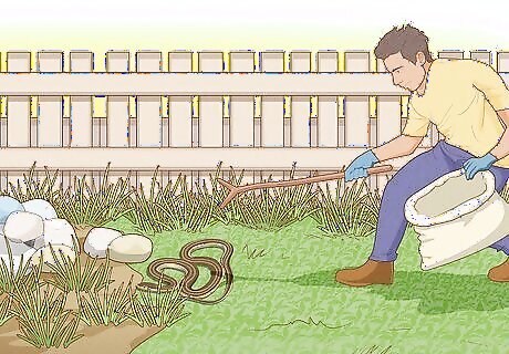 Invite garter snakes to your property. You may be surprised to learn that many gardeners go to great lengths to try to attract garter snakes! You can try to entice them by providing them with hiding places (stacked rocks, sheets of plywood, or stumps) and fresh water sources (such as shallow fountains or ground-level birdbaths).