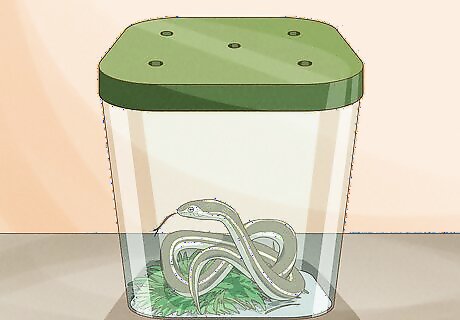 Provide your snake with a safe, comfortable space. If you only plan on keeping your garter snake for a day's observation, it should be fine kept in a deep, lidded bucket (with ventilation holes) with a bit of grass and a misting of water. If you decide to keep your garter snake, you will need to transfer it to a more suitable home and learn about its dietary needs. Be sure to read our our wikiHow on how to take care of your garter snake.