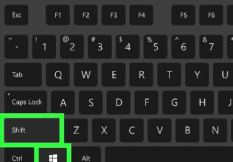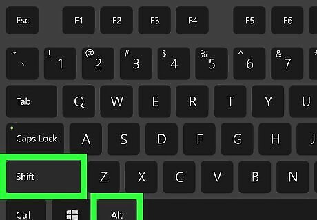 Press Alt+⇧ Shift on your keyboard. This shortcut will switch your keyboard to the next available layout on your saved keyboards list. Press the combination again to switch to the next layout on the list. If you only have two layouts saved, you'll just switch back to your first one.