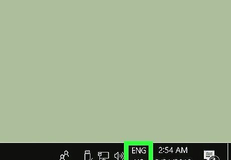 Find the language icon on your computer's taskbar. Your keyboard's current language is displayed next to the date and time information on your computer's taskbar. For example, if your keyboard language is currently set to English, this icon will show ENG next to the clock on your taskbar.