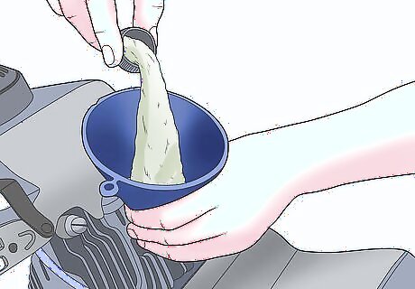 After drain plug is closed & has a proper seal,prepare to then refill the oil filler hole to proper fill point. Some mowers have the filler hole on top with a dip stick while others are lower on engine near the deck.This type does not have a dip stick, but must be filled to limit,near cap space.Use standard S.A.E 10w30 or 5w30 motor oil.