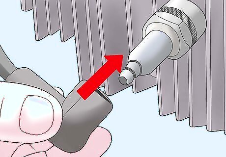 Either prop the mower or hold up & use the socket to loosen the drain plug or bolt. Be sure to have a drain pan under the deck to catch the used oil.