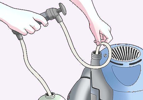 Use a hand siphon hose from auto or hardware store to empty gas from the tank. This prevents spillage onto mower deck & prevent possible fire if ignited by spark plug later. A damaged spark plug wire or plug may ignite any gas spilled.