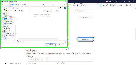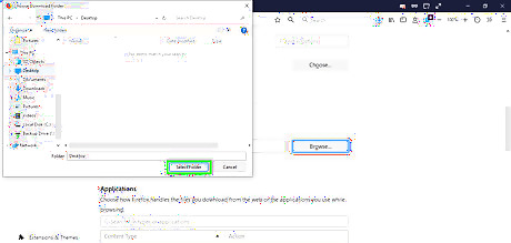 Click Select Folder. The folder that you selected is now the default download folder for Firefox.