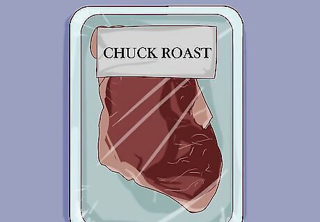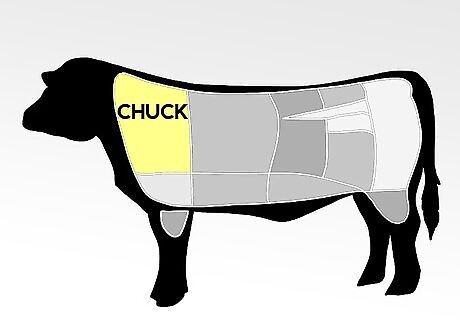 Look for meat labeled "chuck" or "roast." If you’re getting meat from a butcher or a meat counter at the supermarket, they’ll be able to point you towards the cuts from the shoulder and rear end. Even within these areas of an animal’s body, however, there are all sorts of specific cuts of meat. All of the following cuts will work great in a stew: Chuck, Chuck Shoulder, Chuck Roast, Chuck-Eye Roast, Top Chuck, Bottom Round Roast, Bottom Eye Roast, Rump Roast, Eye Round Roast, Top Round, Round Tip Roast, English Roast, and Pot Roast.