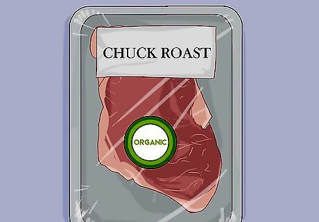 Get organic meat whenever possible. A "certified organic" label is given to meat that is derived from animals that were not treated with antibiotics, hormones, pesticides, or biotechnology. Organically raised cattle were also allowed to graze in a pasture for at least a third of every year. Keep in mind that the healthiest meat comes from the healthiest animals. Unfortunately, much of the meat available for human consumption comes from farms where issues such as overcrowding, extensive antibiotic use, and forced feeding are common. While organic meat is nutritionally comparable to meat from animals treated with chemicals, other methods of cattle raising are objectively unsustainable, and increasingly contribute to the risk of antibiotic-resistant strains of bacteria. Note that “grass-fed” animals, unless certified organic, may have been given antibiotics and hormones. The grass fed label means that they were allowed to graze naturally for part of the their lives and were not force-fed grain. Organically derived meats are better for the environment and often best tasting. However, they are nutritionally no different than conventionally farmed meats. Also, they are often far more expensive, which can be an issue in food budgets.