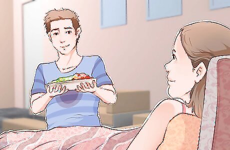 Cook for her. Before she wakes up in the morning, you can make her breakfast and serve it in bed. Children can also help out by mixing ingredients and serving. Later on, you can make her dinner or dessert. Try surprising her with her favorite food or make a new recipe you think she’ll enjoy.