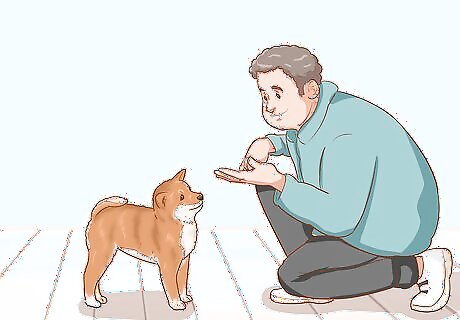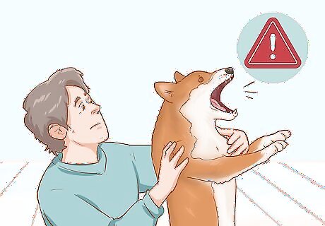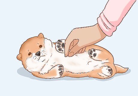 Perform a simple test for aggression. Roll the puppy onto his back and gently hold him in that position. While there's some disagreement about the usefulness of this test, many experts have used it as a predictor of how aggressive the puppy will be as an adult. If the dog growls and tries to fight you off, it's possible he's more likely to become aggressive. If he lays there completely passive, (unlikely in a Shiba!) then he's likely to be overly submissive. A healthy reaction is somewhere in between, where the puppy wriggles trying to right himself but doesn't growl or snap.