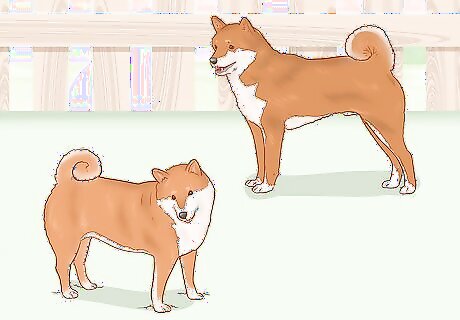 Evaluate the parents' appearance. Especially if you're choosing a puppy you plan to show, it's important your puppy adhere to breed standards. It can be hard to tell how a puppy will develop as it grows, but its parents will give you an idea of what the puppy will look like as an adult. A partial summary of AKC standards for Shiba Inus includes: Size: Males stand 14.5-16.5" at the withers and weigh about 23 lbs. Females stand 13.5-15.5" and weigh about 17 lbs. Head: Shibas should have a confident gaze with dark brown irises rimmed with black. The forehead is broad, flat, and slightly furrowed, and the muzzle's bridge is straight. There should be no over- or underbite in the teeth. Body: The back is level from the base of the neck to the tail. The body is well-muscled, with a chest depth (from withers to lowest point of the sternum) of half or slightly less than the dog's height from withers to the ground. The tail should have a single, not a double, curl. Coat: the only acceptable colors are red, sesame, or black. The outer coat is stiff and straight, while the undercoat is soft and thick. Dogs with over or underbites, males over 16.5" or under 14.5", and females over 15.5" or under 13.5" are disqualified from showing.
