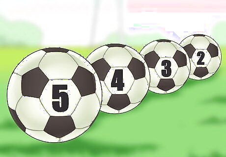 Select the right size. If you are purchasing a ball to train for league soccer, buy the appropriate size ball for your age group. Refer to your coach or league officials to find out the exact size needed. This may vary from league to league, but they generally follow these guidelines: #5: ages 12 and over #4: ages 8 to 12 #3: ages 7 and under #2 and #1: not used in matches, but can be used for fun or to develop footwork