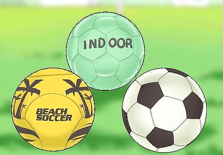 Factor in where you will be playing. First, determine whether you will be playing inside or outside. Next, consider the surface on which you will be playing. If it isn’t natural grass, buy a ball that is appropriate for that surface. Choose between: Indoor balls Beach/street balls Turf balls for artificial grass