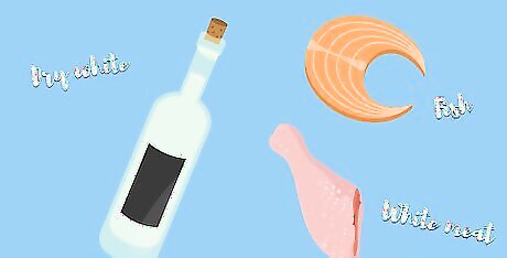 Opt for a dry white if you are cooking white meat, fish, or creamy sauces. Dry, crisp white is the most popular wine to cook with and can add wonderful flavor to creamy sauces, soups, chicken and shell fish dishes. Choose a rich, dry wine like Chardonnay for cream, or chicken dishes, a crisper Pinot Grigio for seafood options, and a lighter Sauvignon Blanc for veggies. Sweet white wines are used less in cooking, but if a recipe calls for a sweeter white, try out a Chenin Blanc, Muscat, or White Zinfandel.