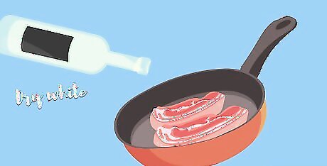 Use a dry white to deglaze your pan. Deglazing is the fancy way of saying 'removing bits of food from the pan with wine.' When you cook, bits of food often remain in the pan, and these are often the most flavorful. Deglazing allows you to maximise their flavor by mixing in some cool white wine to create a flavorsome broth, sauce, or stew. Sweeter wines might caramelize during the deglazing process, or add too much sweetness to your dish.