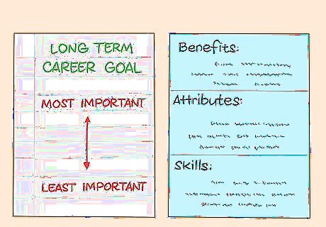 Make a list of benefits and attributes you want your next job to have. In addition to your long-term career goals, you should also consider what you want out of your next job in the short term. Write down the different perks, benefits, and skills you want to receive from your next job and weigh them against your long-term goals in your considerations. When you create your list of short-term goals, put them in hierarchical order from most important to least and decide which ones aren’t completely necessary. For instance, if one job offer includes a spacious office with a window, while this is certainly a perk, it may not rank very high on your list of priorities and thus shouldn’t count for much in your decision.