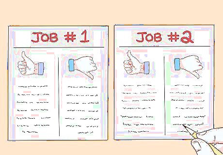 Choose the job you feel would be best for you. Finally, once you’ve tallied all the benefits and downsides of each job offer, make an informed decision based on the chart you’ve created. When making your choice, take your intuition into consideration as well; in other words, listen to your gut and choose the job you feel best about.