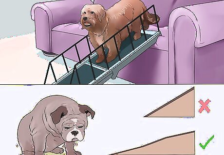 Choose a ramp that will be secure against the furniture. It's important that you get a ramp that won't slip or fall over when your dog is using it. A secure ramp that latches onto the furniture or butts up against the edge of it will help prevent an accident from happening.