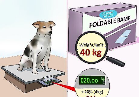 Weigh your dog. Another element you need to consider before choosing a furniture ramp is your dog’s weight. This is extremely important as the ramp you pick will need to be one that can accommodate your dog safely. Weigh your dog. If your dog is a puppy, consider what their full grown height will be. Add 10% or 20% to the weight of your dog to ensure that if your dog gains weight, the ramp will still accommodate them.