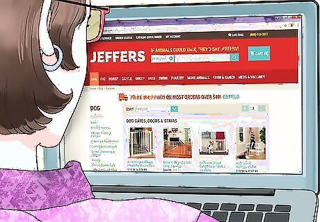 Locate a furniture ramp online. You should also put in a little time searching for your ramps online. This is a must do, since the variety of online pet retailers will ensure you a much larger selection than will be available in your region. Consider websites of major stores like Pet Smart, PetCo, Pet Supermarket, and Amazon. Consider specialty retailers like Jeffers. Look on auction sites like eBay.