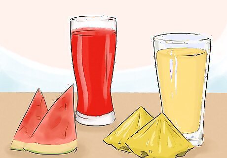 Add juice to water or sparkling water. When starting your child on juice, it is a good idea to dilute it 50/50 with water. This will cut down on the sugar and calories while still giving your child the taste of juice. If your older kids like the taste of juice but you'd like to cut back on their sugar, try adding a dash of juice to water and sparkling water. It may take your kids some time to adjust, but they'll soon like this refreshing beverage.