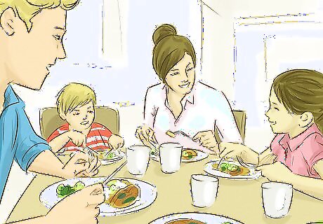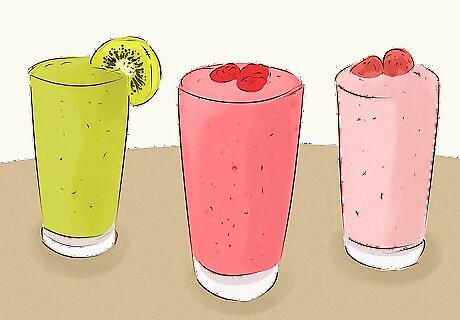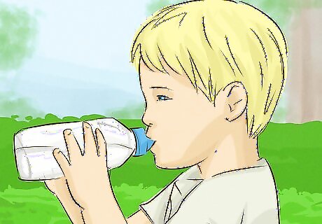 Encourage them to drink water. Water is the best option for kids (and adults!), so serve water as much as possible. Tap water and sparkling water are both good options for kids, iced or lukewarm, depending on their preference. Make drinking water more fun! Let kids have a special cup or water bottle that's just for them. Silly straws can also make it more fun. Try sparkling waters with added flavors that don't have sweeteners. Another way to make water more fun for kids is to add pieces of fruit for a light flavor. You can add lemon, lime, grapefruit, or orange wedges, or slices of strawberries or cucumber, for instance. Mint leaves are also a nice addition. If your kids complain about the water tasting bad, try using a filtered water pitcher that you keep cold in the fridge.