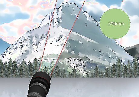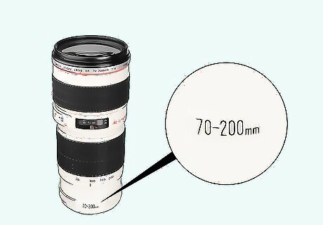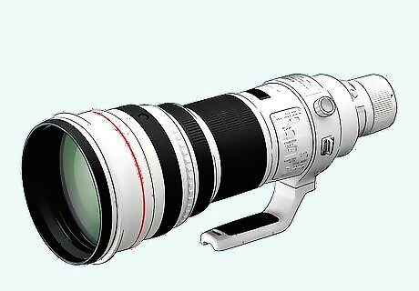 Purchase a telephoto lens to take photos of subjects from far away. Telephoto lenses are often referred to as anything over 70mm, although a true telephoto lens would be something over 135mm. A telephoto lens has a narrow field of view, which makes them good for focusing in on small details or objects that are far in the distance. Telephoto lenses are often large and heavy, so they’re not ideal for everyday photography. These lenses are popular in nature photography because of their ability to capture details from a distance.
