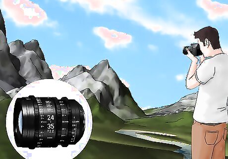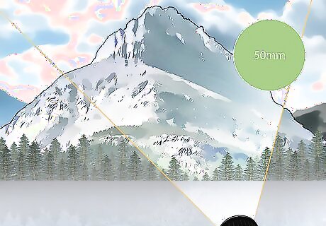 Select a lower focal length to take wider shots. A lower focal length means that the lens can project a wider image onto the sensor, capturing more of what you see. If you want to photograph landscapes, groups of people, or other large objects, you’ll likely want a lower focal length. For instance, a wide-angle lens used for landscapes is often in the 14-35mm range.