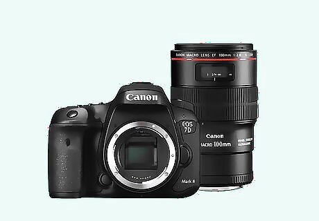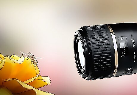 Look for a macro lens for super close-up shots. A macro lens is used to capture details on very small objects, like the intricate details on insects, plants, or jewelry.The reproduction rates on macro lenses is 1:1 or greater, meaning the image projected on the sensor is at least as large as the original object. When you then expand that image on a screen, you can see more detail than you could with your naked eye. Macro lenses typically have a focal length between 40-200mm. These lenses are also sometimes used for portraits.