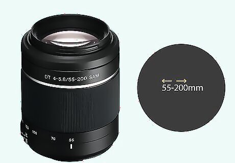 Look at the "mm" number to determine the focal length. When you’re comparing different lenses, you’ll see a number with “mm” following it. This is the focal length, which tells you how close or far away an object needs in order for you to capture it in focus. The focal length also indicates whether your photos will cover a wide or narrow area. A lower number is wider, and a higher number is narrower.