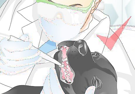 Take your dog to have its teeth cleaned professionally. If your dog has tartar buildup, daily brushing at home will not remove it as it strongly adheres to the teeth. Although it is an expensive procedure, your veterinarian will need to remove the tartar and polish the dog’s teeth to ensure your dog’s overall health. A blood test will determine if your dog is healthy enough for this procedure. Under anesthesia, your veterinarian will provide a full cleaning beneath the dog’s gumline, will scrape away the tartar buildup, and will finish by polishing your dog’s teeth. The final polish will help prevent future plaque and tartar accumulations.