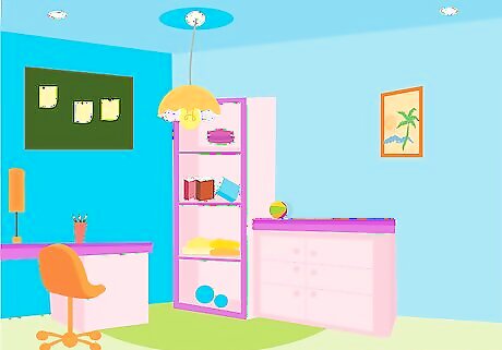 Add task lighting. You may require a specific type of light in certain areas of the room for certain tasks. You'll need task lighting for under cabinets or in storage closets. If you have a workstation in a corner of the basement, you'll need a desk lamp. A drawing board may need a strong overhead light. If an area isn't getting enough light, add more task lighting until you can see clearly without straining your eyes.