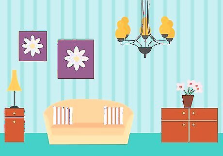 Add accent lighting. A basement with nothing more than overall lighting can feel very artificial and empty due to the harshness of the lights. Lamps can improve a harshly lit environment by introducing soft, ambient lighting. This type of lighting works by accenting certain zones of the room. For example, a lamp on a table by a couch can make the area around the couch feel more lively. Where to place accent lighting is up to your personal preference, but in most cases you would want to place them in areas that you want to emphasize, such as a desk or a media corner. It helps to keep your lights at eye level—this makes you feel more comfortable.