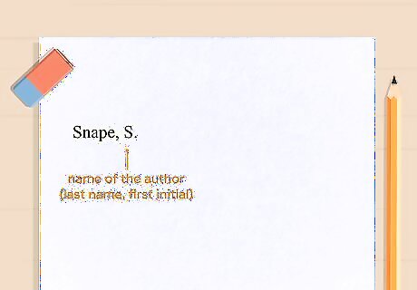 Start your entry with the name of the author. Type the author's surname first, followed by a comma. Then, type their first initial. Place a period (full stop) after the author's initial. Example: Snape, S.