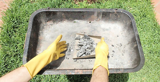 Throw away any leftover ashes from the ash catcher, if necessary. The ash catcher is a receptacle on the bottom of the grill where ashes collect over time. Some public grills may not be equipped with an ash catcher. Brush ashes into a plastic bag and throw these away. Some ash catchers may detach from the grill for easy disposal. Slide the ash catcher out of grill, dump the ashes in a bag to be thrown away or directly into the garbage.