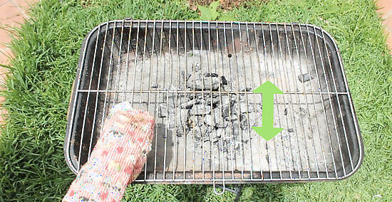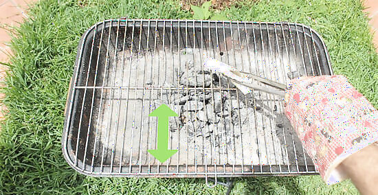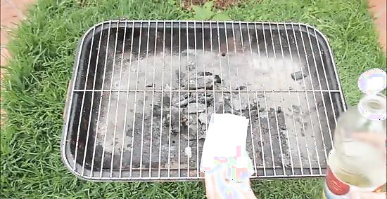 Apply the oil to the grate with an oven mitt and tongs. Put an oven mitt on your dominant hand. With your mitted hand, pick up the tongs. Use the tongs to carefully wipe the grate with the paper towel. Cover all surfaces of the grate lightly with oil. Throw the paper towel out after using it. When the grill is lit, there is a chance the paper towel may catch fire. If this happens, don’t panic. Remove the paper towel from the grill and dunk it in a bucket of water.