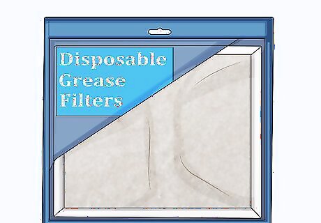 Consider using disposable fiber grease filters in commercial kitchens. While residential grease filters can typically go up to three months without cleaning, grease filters in commercial kitchens need to be cleaned weekly or daily, depending on cooking style and volume. The labor and water costs of frequent cleanings can add up, but you can cut your costs by placing disposable wool filters over your metal hood grease filters. Disposable filters are flame retardant and designed to fit over standard metal baffle filters. They also reduce grease buildup throughout the ventilation duct system.