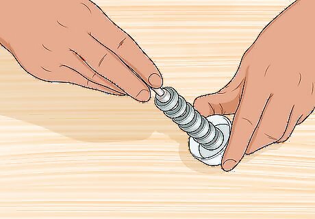Stack the bearings onto your cleaning kit. If you’re using a store bought kit, place a bearing casing onto the base, snap a spacer over it, then repeat the sequence until you’ve stacked all of the casings. If you’re using a homemade cleaning kit, slide the bearing casings down the bolt’s length and place a ballpoint pen spacer between each casing. Stacking the bearing casings instead of free washing them in a container will help prevent casings from scratching each other. It’ll also help keep the balls from falling out of the casings.