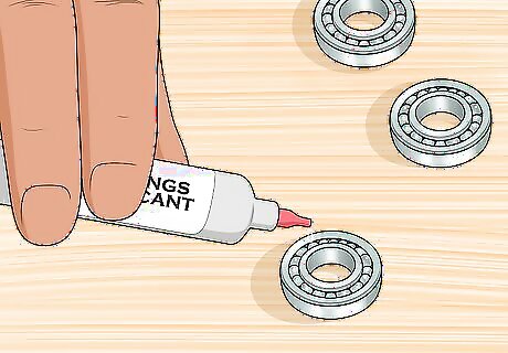 Dry and lubricate your bearings. Remove the casings from the container and unstack them. Use compressed air to thoroughly dry them. Once they’re dry, apply a few drops of lubricant using a hypodermic needle or pin. Use either a lubricant made for skate ball bearings, sewing machine lubricant, or lubricant made for electronic devices. These products typically come with a needle applicator.