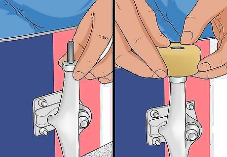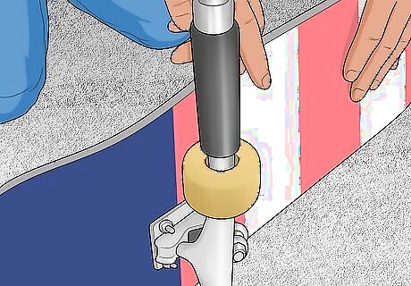 Take the bearings off of your wheels. In addition to a socket that tightens and loosens nuts, most skate tools also have an attachment that pokes the bearing from the center of the wheel. While using a skate tool is the preferred method, you can also use a screwdriver to poke out the bearing casing. If you have a skateboard, you can use the axle to poke out the bearing casing. Hold the wheel against the axle so the side that would normally face outward faces in and touches the axle. Apply gentle pressure to pop out the bearing casing.