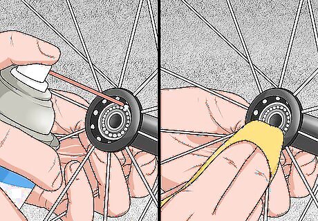 Degrease and wipe the balls and bearing seat. Spray the ball bearings with an aerosol degreaser and wipe them down with a rag. Fit a small straw into the nozzle of the aerosol degreaser and spray inside the bearing seat. Wipe inside the seat by wrapping your finger in a rag. Wear gloves when using a degreaser.