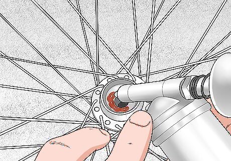 Use a grease gun to repack the cartridge with grease. Liberally repack the cartridge bearing with bicycle grease. A grease gun, which you can find online or at a bike shop, is the best way to access the cartridge’s tight spaces. If you live in a wet area, pack more grease into the cartridge to protect the bearings. Once you’ve cleaned and repacked one wheel, repeat the process on the other.