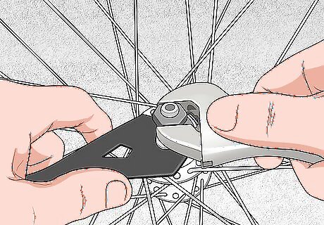 Use cone spanners to remove the hub cone and axle. You’ll need a pair of thin cone spanners to disassemble a cup-and-cone hub. Place one cone spanner around the cone itself and the other spanner around the lug nut. Twist the lug counterclockwise to remove it. For the rear wheel, you’ll have to remove the cassette in order to access the cup-and-cone. You’ll need a cassette removal tool, which you can find online or at a bike shop, to fit into the cassette and loosen the locking nut. Set the lug nuts and any washers or spacers aside in proper order to make reassembly easier.