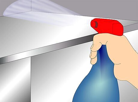 Close the cabinets and spray the exterior with spray cleaner. Wipe the cabinets clean and then dry them with a lint-free towel.
