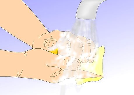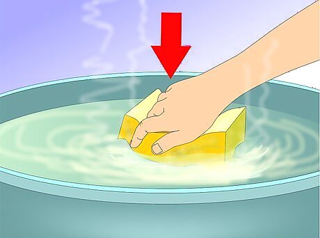 Dip a sponge into the oil soap. The sponge should have both a soft side and a scouring side for best results.