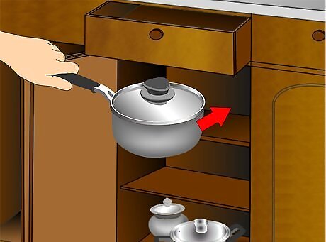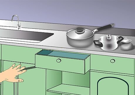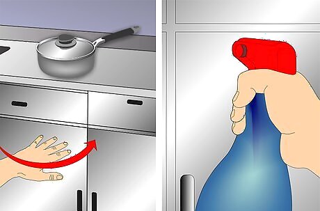 Empty out your kitchen cabinets. Clean the interior with soap and water.
