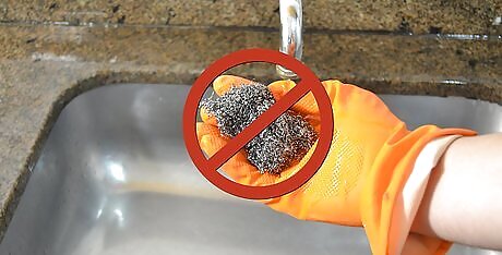 Avoid rubber dish mats. Do not place a rubber dish mat at the bottom of a stainless steel sink. These products can trap water, resulting in discoloration over time. If you prefer to use a rubber dish mat when doing dishes, leave the mat in the sink while you're washing dishes. Then, remove it and dry the area underneath when you're done.
